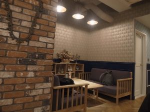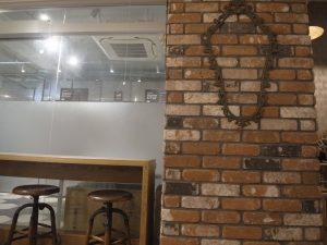 店内には洋楽のポップスが流れ、エイジング処理のされた煉瓦にアンティークゴールドのフレームがあしらわれたシャビーシックな雰囲気。